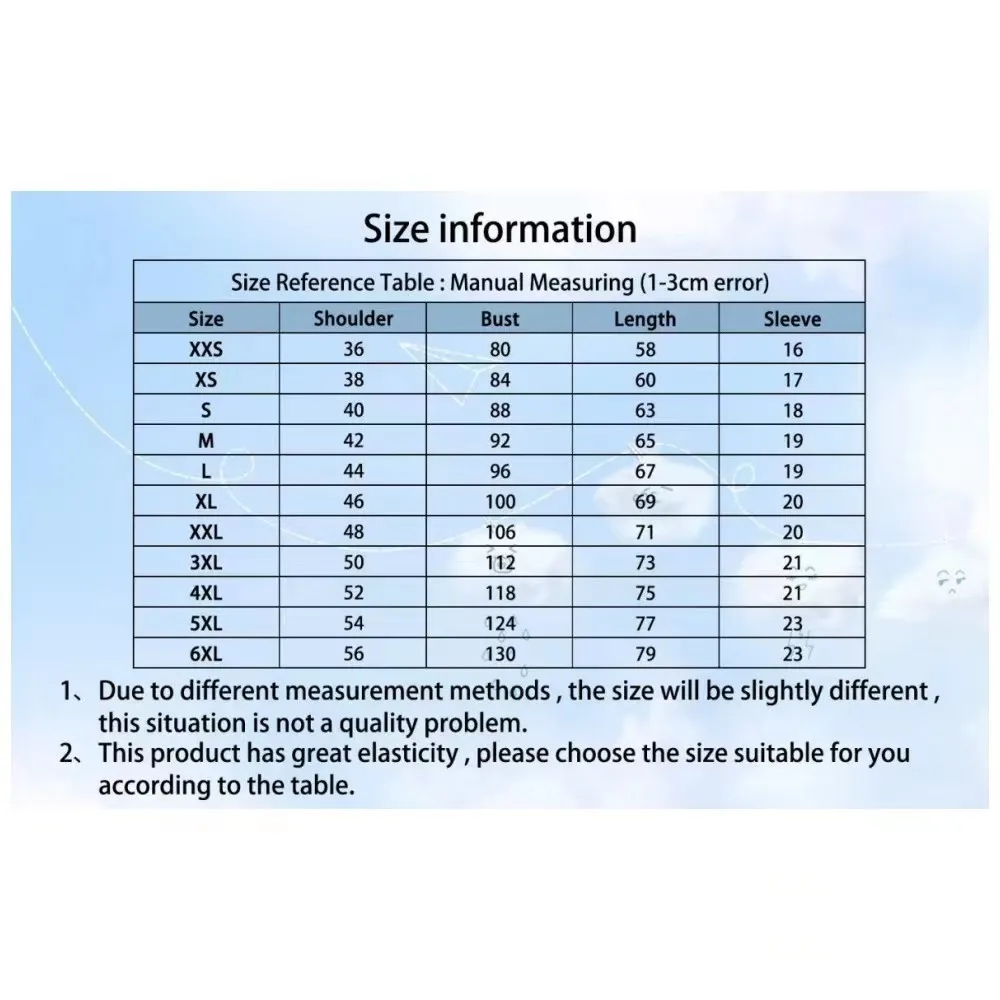 Size:Asian SizeXXS-6XL(pls check the size chart before ordering, thank you!)